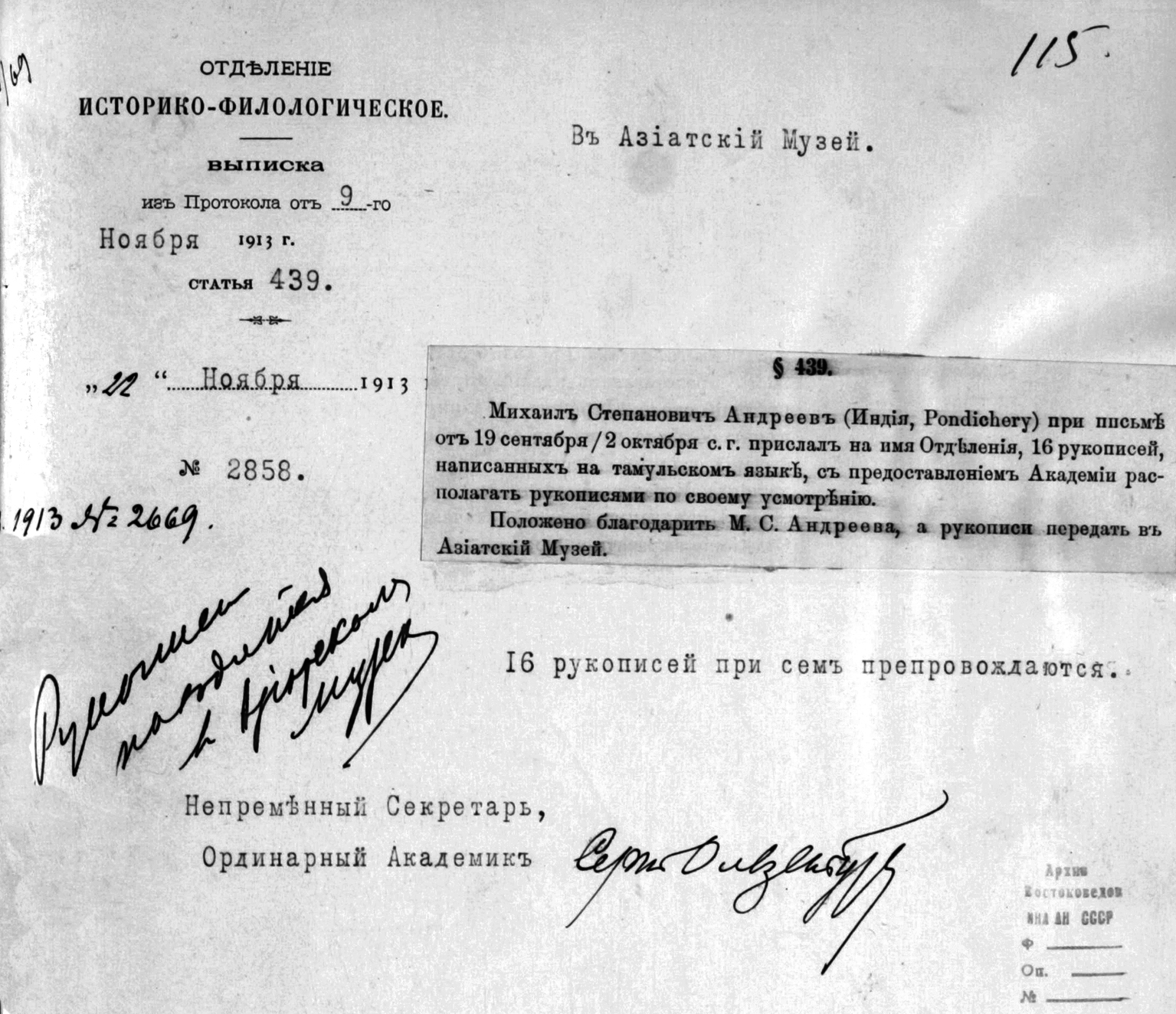 M.S. Andreev’s Collection of Tamil Manuscripts in IOM, RAS