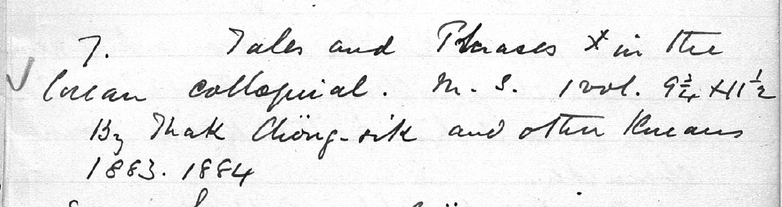 - Hŏ Kyŏng-jin 허경진, Yu Ch’un-dong 유춘동. Rŏsia wa Yŏngguk e innŭn Han’guk chŏnjŏk 3: Aesŭt’ŏn ŭi Chosŏnŏ haksŭpsŏ Corean Tales 러시아와 영국에 있는 한국전적 3: 애스턴의 조선어 학습서 Corean Tales [Old Korean books in Russia & the United Kingdom 3]. Seoul: Kugoe sojae munhwajae chaedan 국외소재문화재재단, 2015 (in Korean).