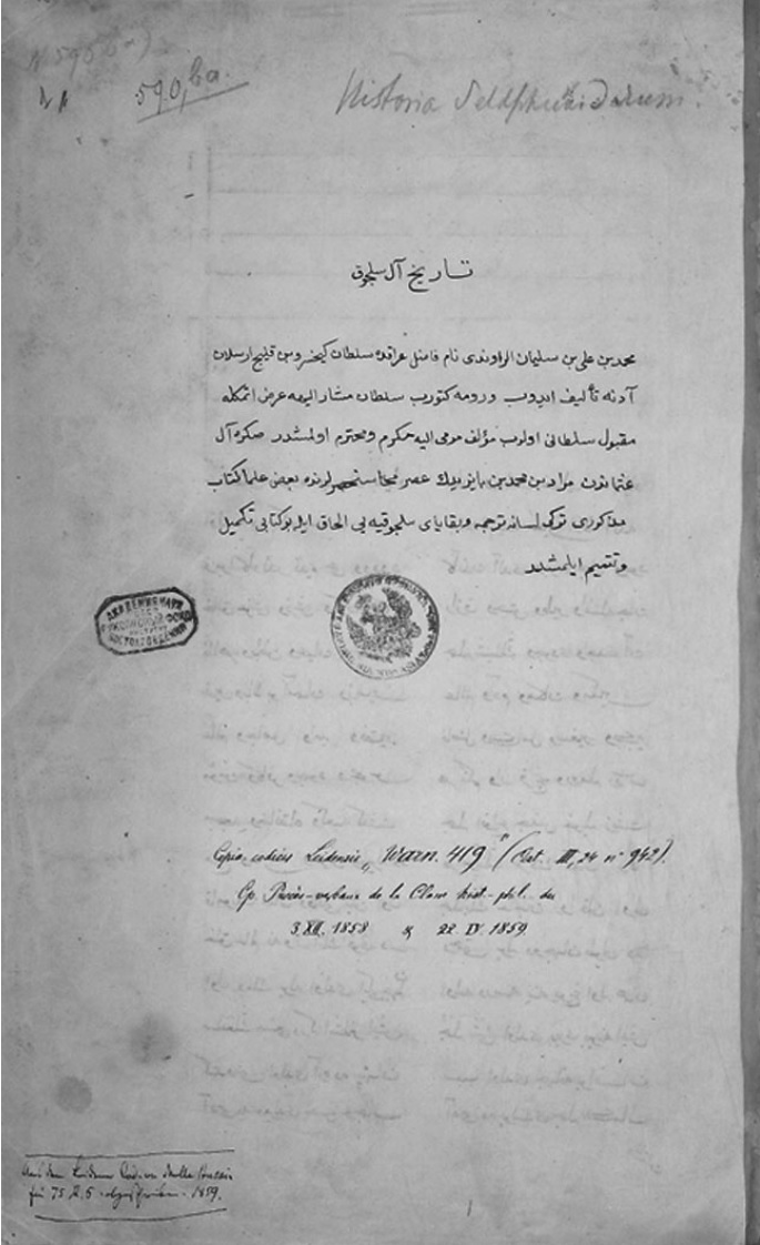- Mikhailova, Aleksandra I. Katalog arabskikh rukopisei Instituta narodov Azii Akademii nauk SSSR. [A Catalogue of Arabic Manuscripts of the Institute of the Peoples of Asia, USSR Academy of Sciences]. Vol. 3. Istoriia [History]. Moscow: Izdatel’stvo vostochnoi literatury, 1965 (in Russian).