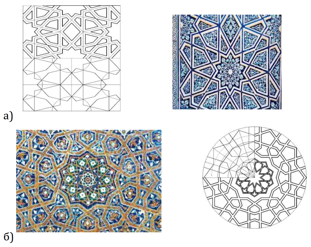 Метод геометрической гармонизации, разработанный зодчими Средней Азии (как и всего Среднего Востока), опирался на точные науки, особенно математику и геометрию, но корректировался требованиями определенного оптического эффекта, отвечавшего эстетическим запросам своей эпохи [3].