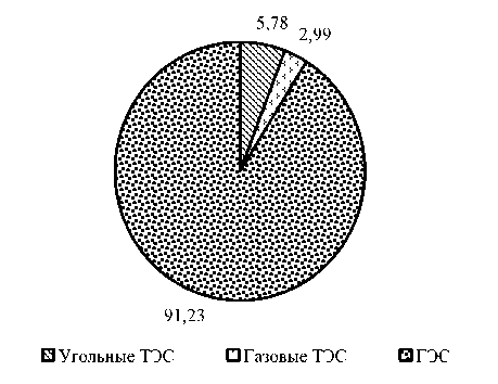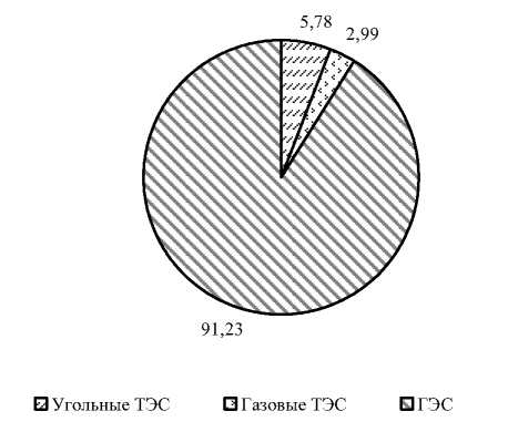 Рис. 1. Структура выработки электроэнергии в Таджикистане, 2021 г., %