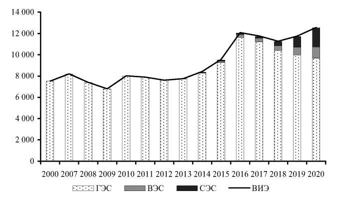 Рис. 6. Динамика выработки энергии из возобновляемых источников (Кыргызстан), ГВт/ч