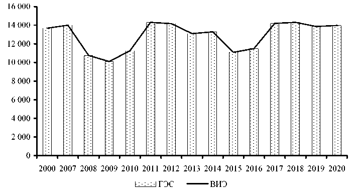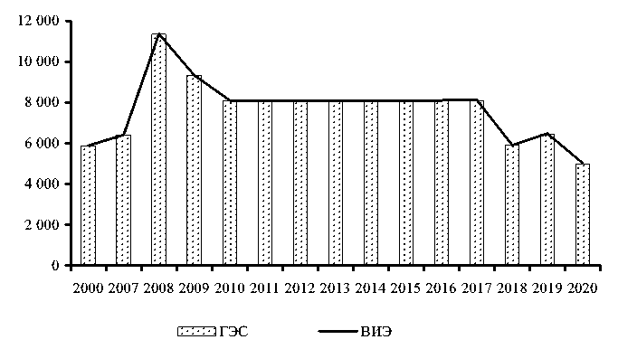 Рис. 7. Динамика выработки энергии из возобновляемых источников (Таджикистан), ГВт/ч