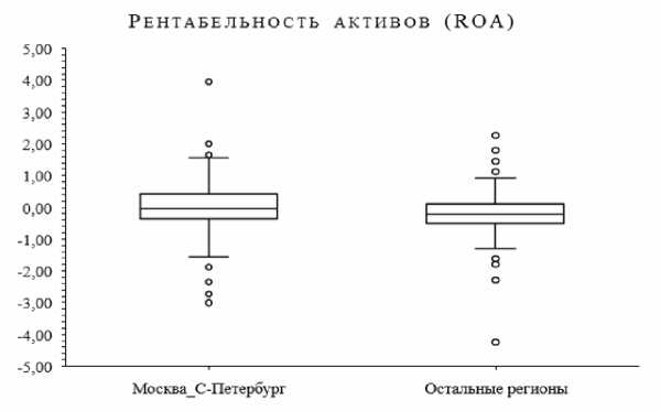 Региональные различия компаний наиболее наглядно иллюстрируют категорированные диаграммы Бокса – Вискера. Приведем эти графики для нескольких показателей, подкрепляя их проверкой различий с использованием критерия Краскела – Уоллиса.