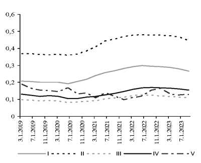 Рис. 14. Динамика среднего отношения ценных бумаг до погашения ко всем ценным бумагам 2019–2023 гг.