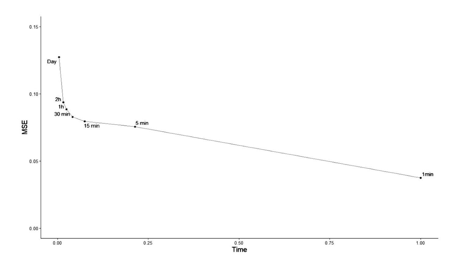 Fig. 13. APIN (Aggregation of trades by 2 hours vs 1 hour vs 30 minutes)
