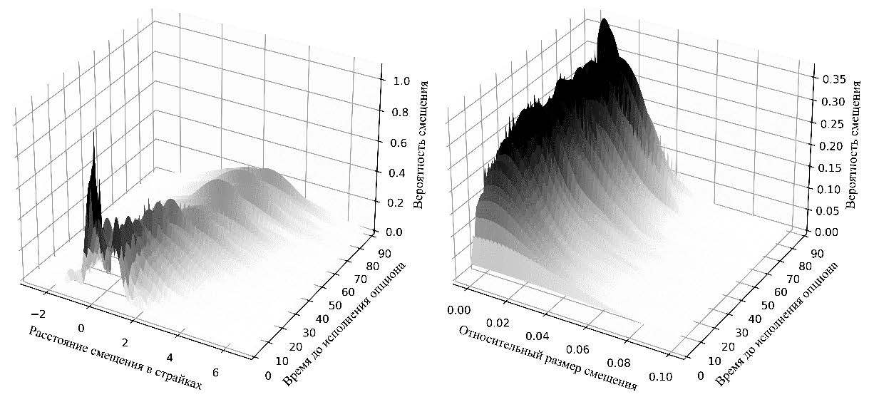 Во всех случаях относительное смещение волатильности значимо снижает уровень риска на центральном страйке, расстояние смещения значимо повышает уровень риска. Структура волатильности вместе с этим оказывает значимое влияние на уровень риска, но относительное смещение и смещение в страйках противоположны по своему влиянию для опционов со стоимостью базового актива меньше страйка.