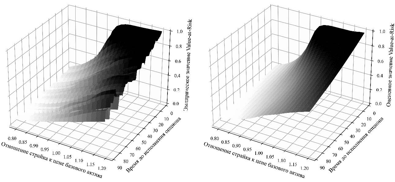 Для расчета используются наблюдения по всем опционам в момент времени до исполнения t. В каждый момент t множество опционов при фиксированном отношении страйка к стоимости базового актива за всю историю наблюдений образует распределение доходностей. Из полученного распределения рассчитывается эмпирический квантиль, что соответствует уровню риска опционов при определенном отношении страйка к стоимости базового актива в момент времени t. Повторяя вычисления для каждого t, формируется динамика риска стоимости опциона.