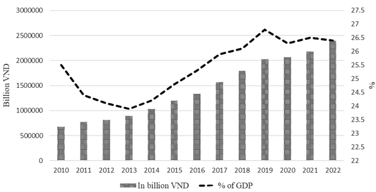 Entering the 21st century, private investment (domestic and foreign) in Vietnam has increasingly become a crucial resource for economic development. According to data from the General Statistics Office of Vietnam, private investment accounted for over 25% of the country's GDP during the period from 2000 to 2017, and the trend continued to increase and stabilize from 2017 to 2022 (see Fig. 1). To achieve these results, various policies encouraging private investment have been implemented and proven effective in practice, such as.