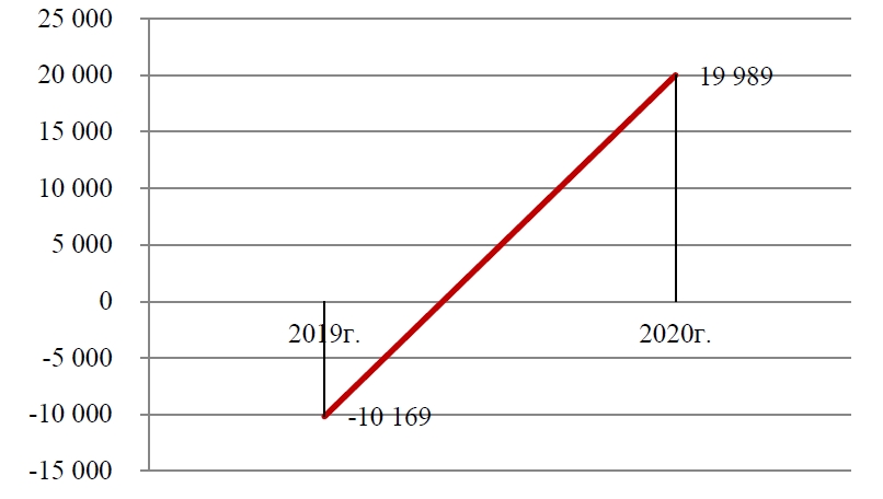 При этом в 2020 г. количество хозяйствующих субъектов, занимающихся на территории муниципального района экономической деятельностью, связанной с транспортировкой и хранением, составляло 28 юридических лиц (увеличилось на 22 % по сравнению с предыдущим годом), 6 из которых являются убыточными (21 %). При этом динамика сальдированного финансового результата данных организаций нестабильна (Рисунок 2).