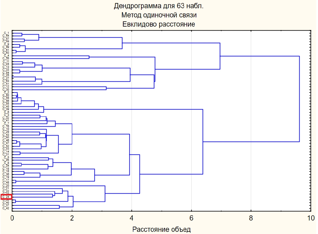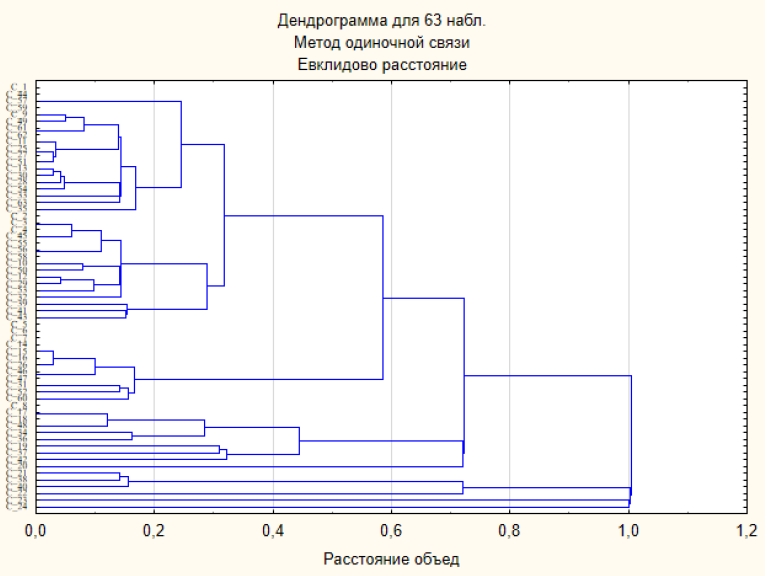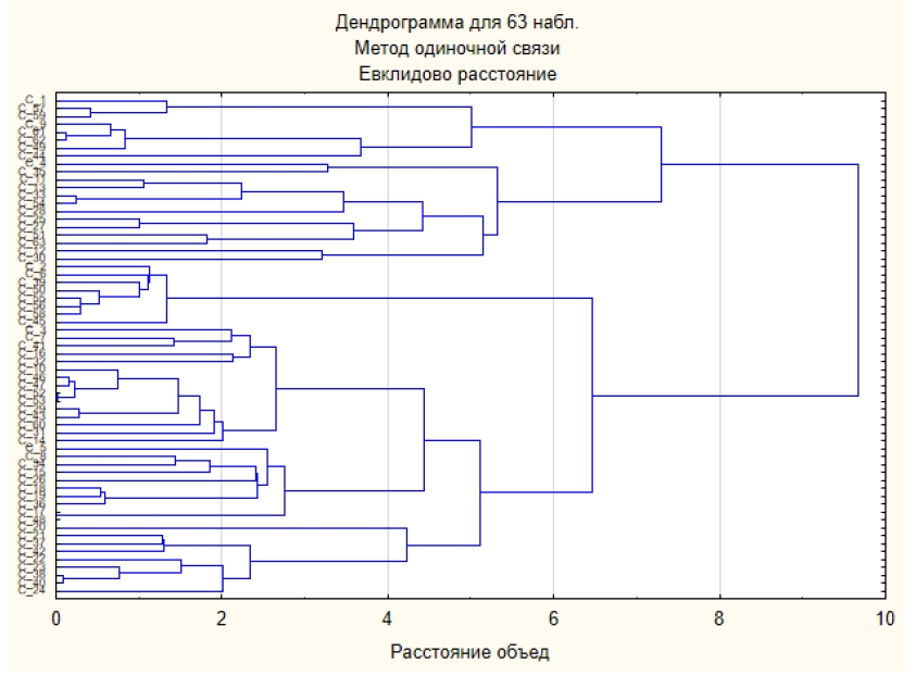 Результаты кластерного анализа при объединении множеств и представлены на рисунке 6.