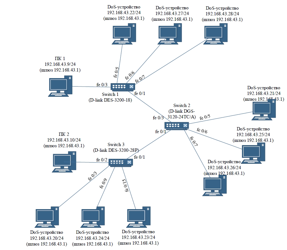 Рисунок 7 – Схема сети с подключением нарушителей