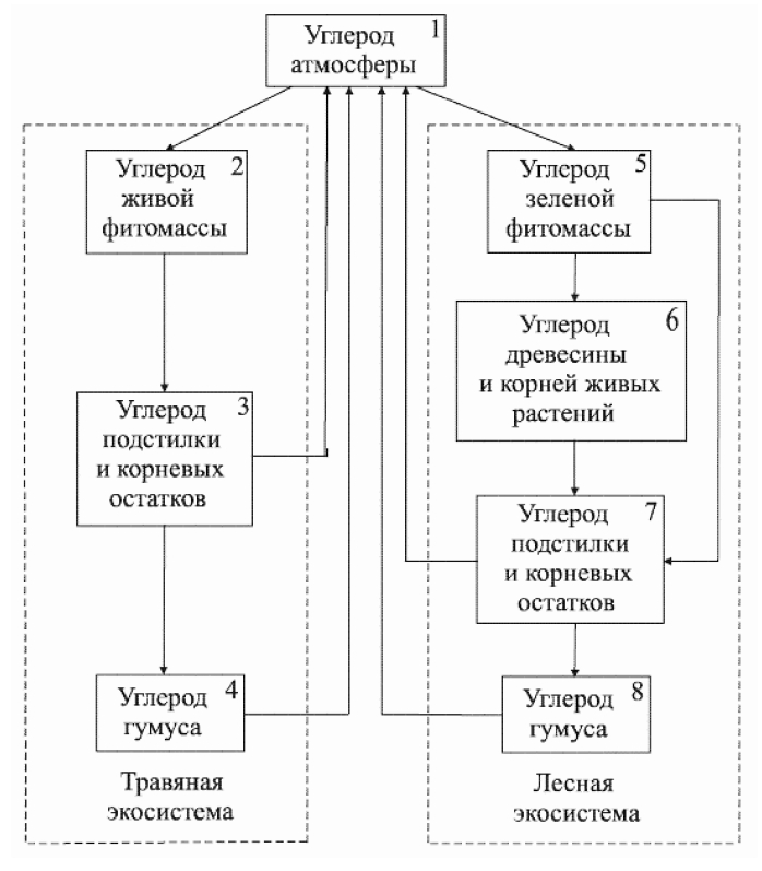 Рисунок 2 – Схема круговорота углерода системы «тундра-тайга» [11]