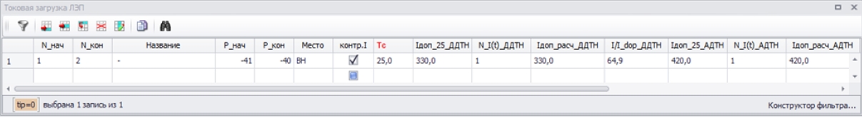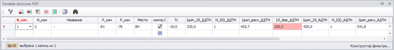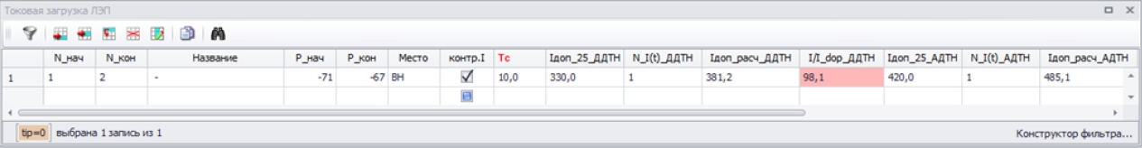 Рисунок 2 – Токовая загрузка ЛЭП при t=+25ºC