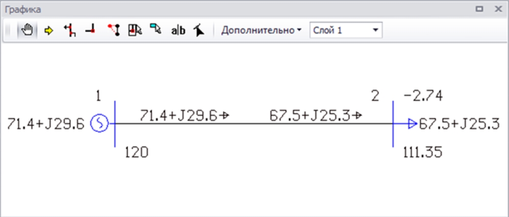2-узловая схема. Исходные параметры для моделирования 2-узловой схемы представлены в таблицах 1 и 2 (узлы и ветви, соответственно).
