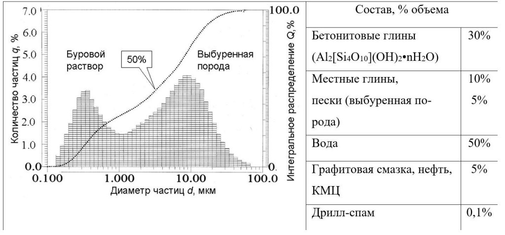 Рисунок 2 – Типичный гранулометрический состав буровых растворов WARP, производимых компанией Mi Swaco группы «Шлюмберже» (SLB: NYSE)