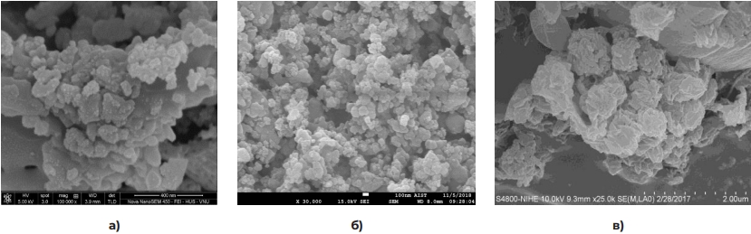 Рисунок 1. Электронно-микроскопический снимок структуры: а) ДК1; б) ДК 2; в) ДК3 (увеличение 105х).