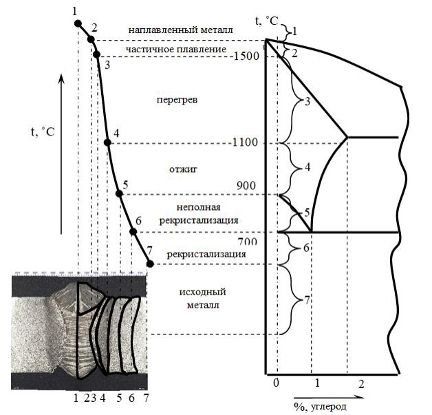 Превращения микроструктуры в сварном шве и в околошовной зоне могут быть описаны классической теорией, которая может быть представлена схематически на рисунке 9.