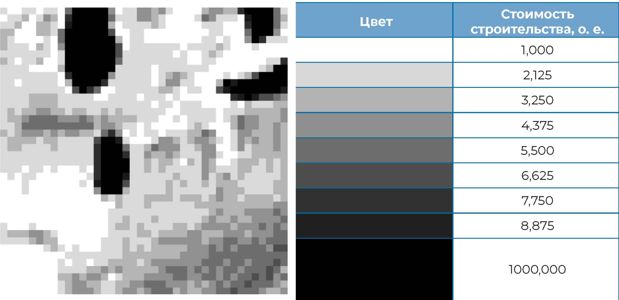 Стоит отметить, что задача построения технических коммуникаций усложняется наличием на территории размещения как объектов техногенного характера, так и природных, естественных преград, в худшем случае, – территория описывается дискретно заданными характеристиками. Таким образом, сложность задачи определяется как NP-мерная.