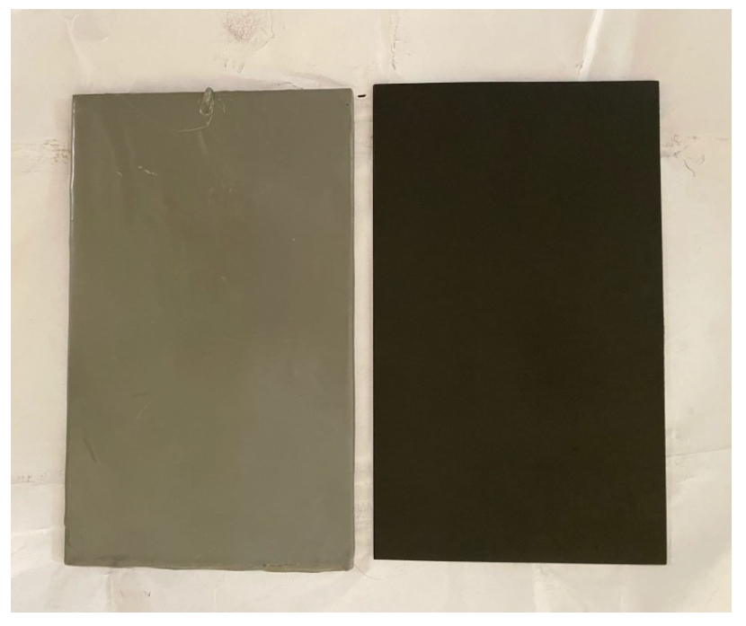 На основании данной таблицы, для проведения испытаний были отобраны образцы «Покрытие на кремнийорганической основе 1 – № 1» и «Покрытие на эпоксидной основе 1 – № 2». На основе этих составов подготовлены две группы образцов: светло-серые образцы являются образцами с эпоксидным покрытием, черные – с кремнийорганическим покрытием (рисунок 1).