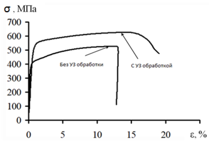 Механические характеристики образцов с ультразвуковой обработкой и без ультразвуковой обработки