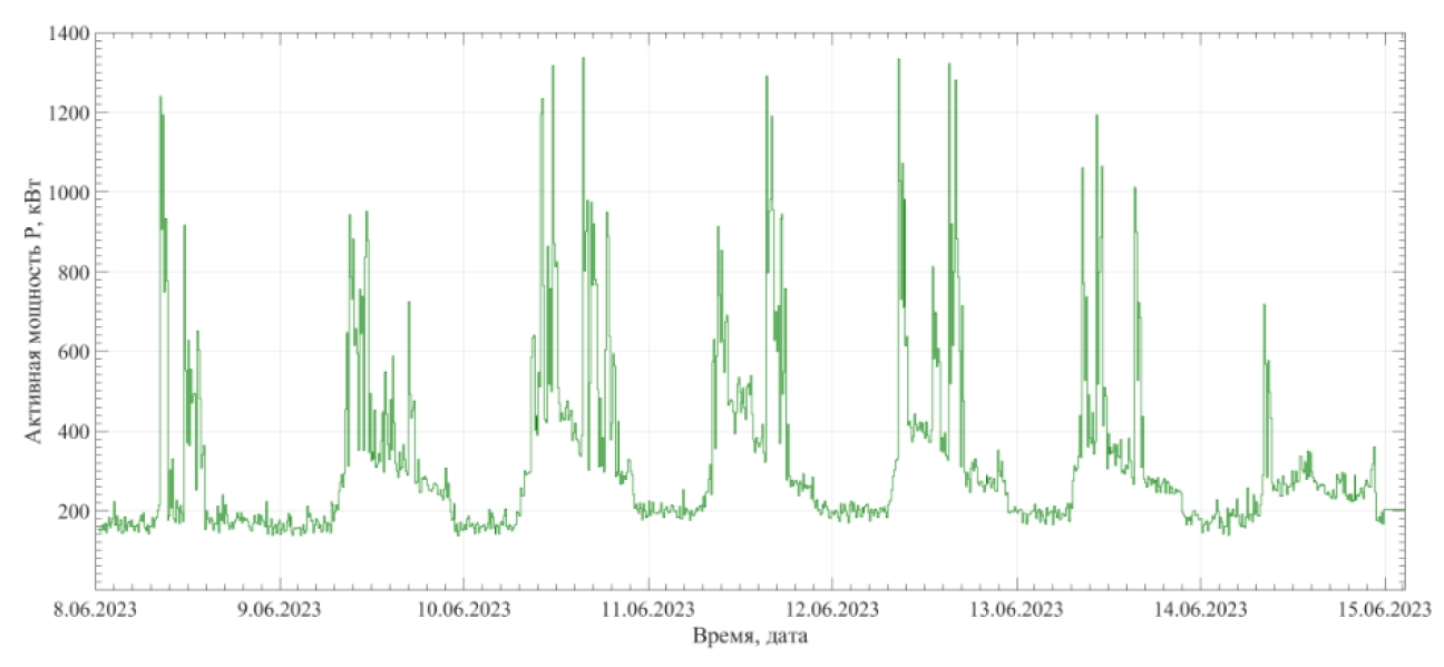 Рисунок 1 – График мощности узла нагрузок за период с 01.06.2023 по 08.06.2023