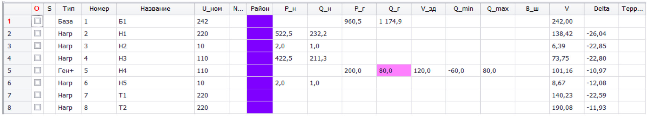 Полученные величины перетоков активной мощности в контролируемом сечении запишем в таблицу 2.