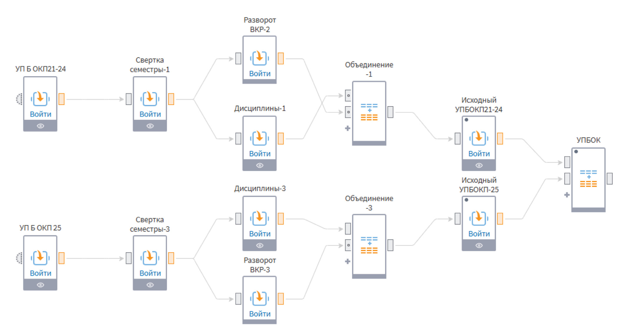 Рисунок 6. Сценарий по преобразованию учебных планов к общей форме в Loginom