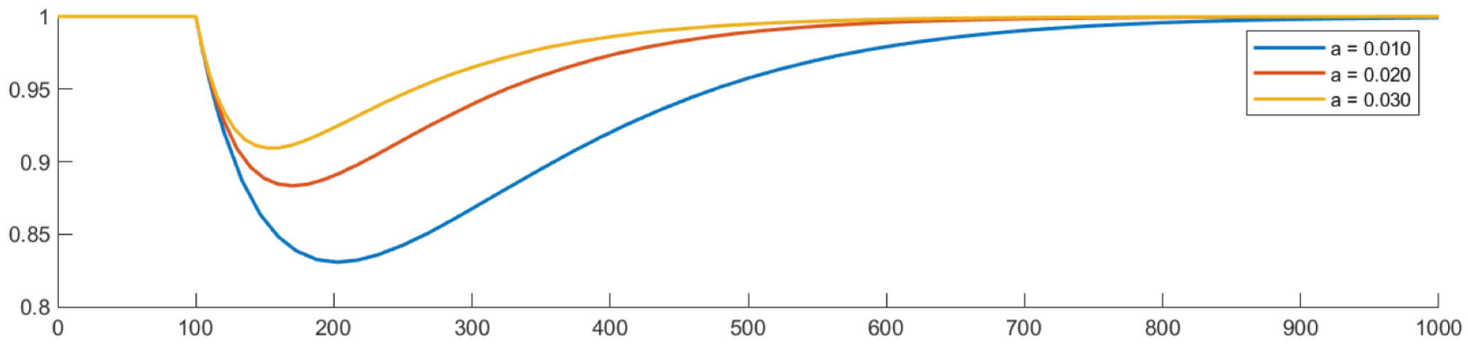Рисунок 4. Распределение уровня кислорода при a = 0,01, a = 0,02 и a = 0,03