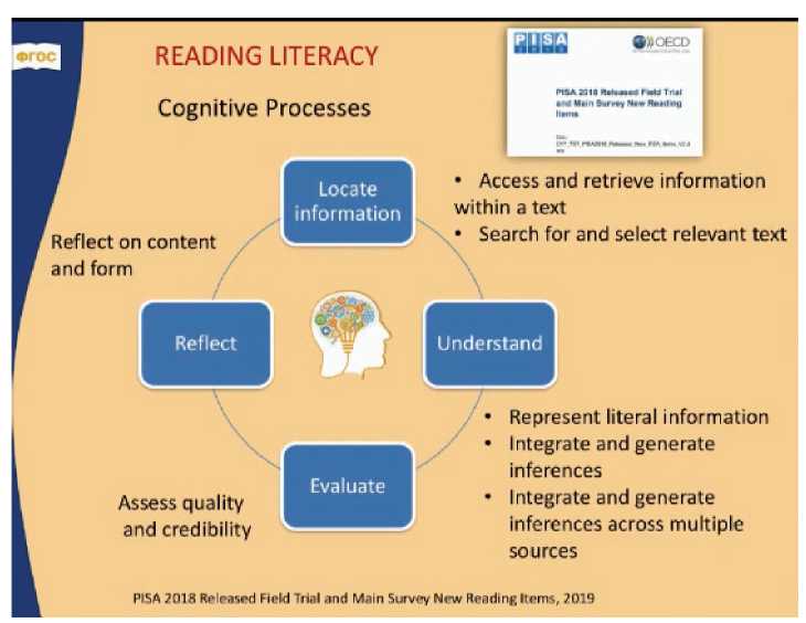Предполагается, что, когда мы работаем над текстом, то задействуем определенные когнитивные процессы [2]. В документах, имеющих отношение к исследованию Pisa в области овладения читательской грамотностью, выделяются четыре умения. Рассмотрим каждый из них подробнее: