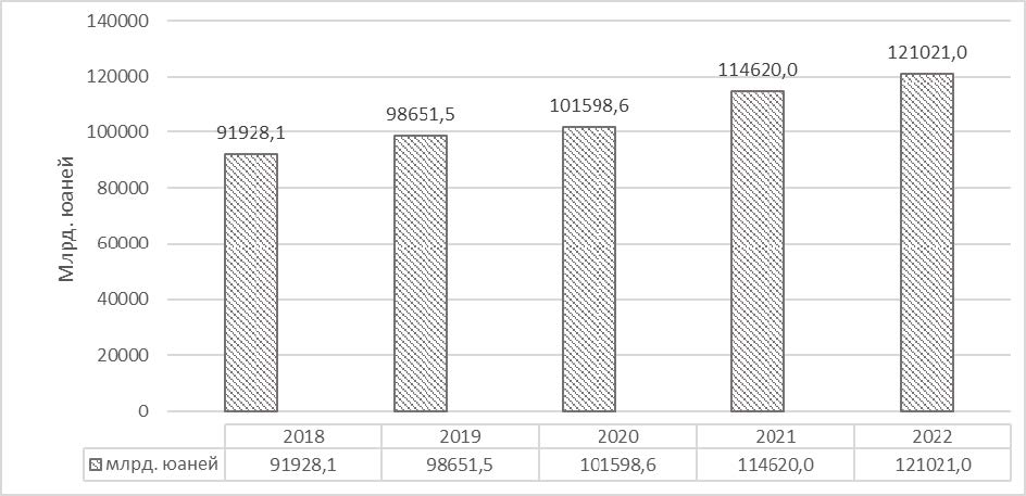 Рис. 1. ВВП Китайской Народной Республики (2018–2022)1