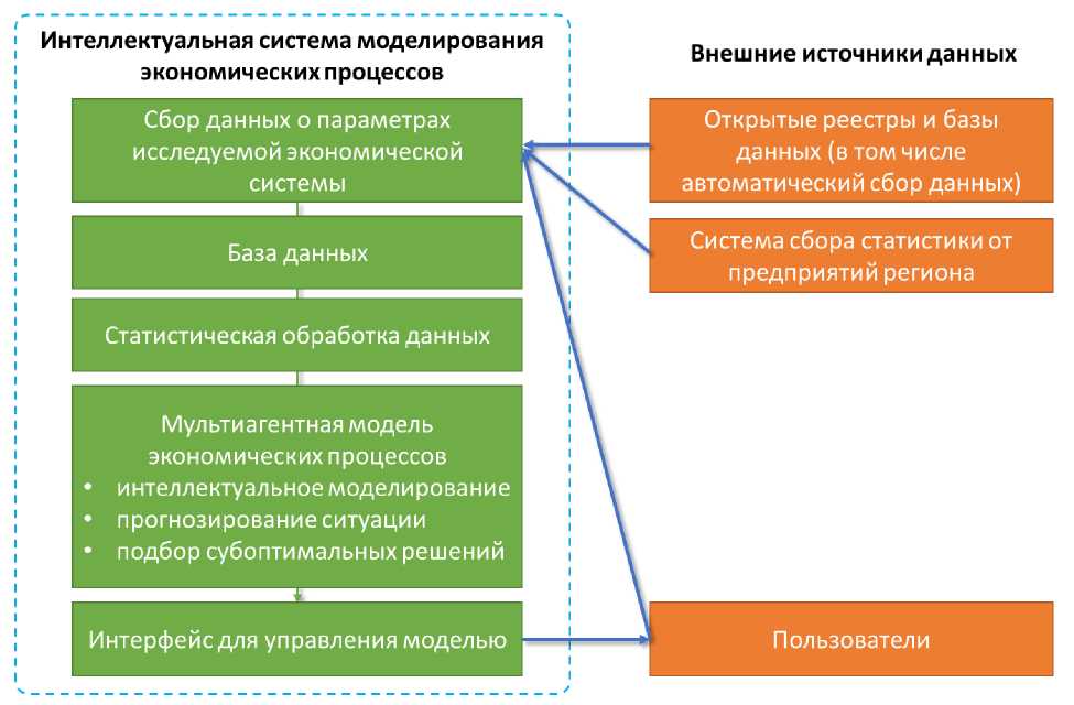 Рис. 2. Структура интеллектуальной системы моделирования экономических процессов
