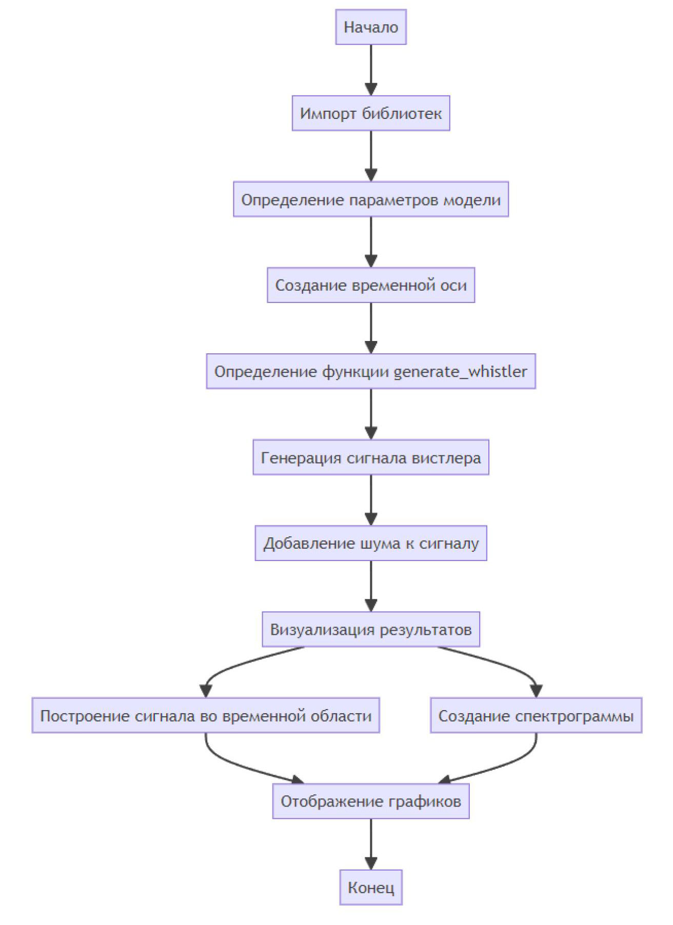 Алгоритм моделирования искусственного вистлера представлен в виде блок-схемы на рис. 3.
