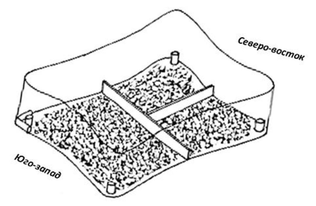Рис. 2. Погребальная яма кургана Ошад с Т-образной перегородкой (по Ю. Ю. Пиотровскому), символизирующей бога Тха