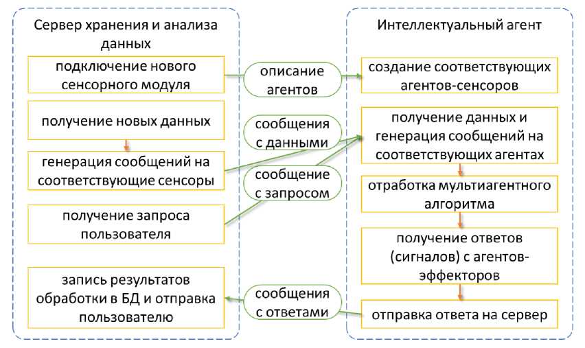 Рис. 3. Схема взаимодействия сервера хранения и анализа данных и интеллектуального агента для их обработки