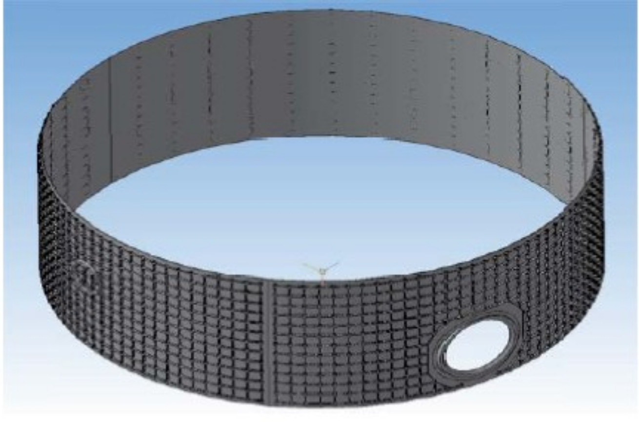В данной работе в качестве объекта контроля рассматривается цилиндрическая обечайка (рис. 1) диаметром 4100 мм, высотой 1560 мм и толщиной 24 мм, сваренная из трех сегментов. Масса объекта составляет 110 кг.