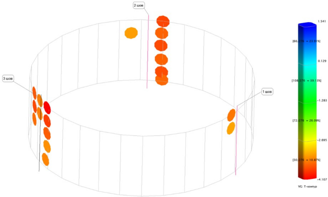 С помощью выбранной конфигурации измерительной системы были проведены измерения геометрических параметров для крупногабаритной обечайки.