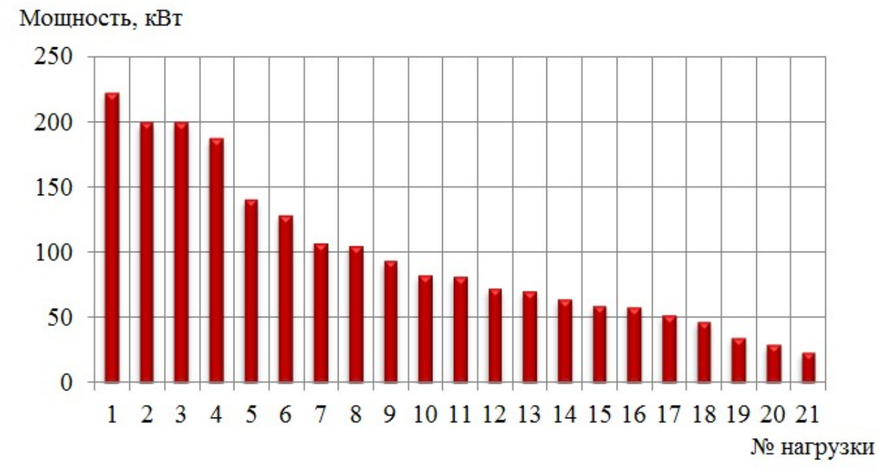 Рис. 2. Распределение мощности центров нагрузки
