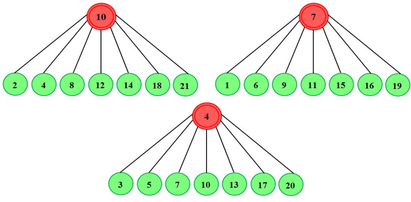 Номера вариантов определяются десятичными значениями двоичных кодов, разряды которых равны рангам площадок, входящих в соответствующий набор. Таким образом, множество с номером 50 содержит ГМГ и площадки с номерами 10, 7 и 4, которые имеют ранги 2, 5 и 6 в соответствии с табл. 1.
