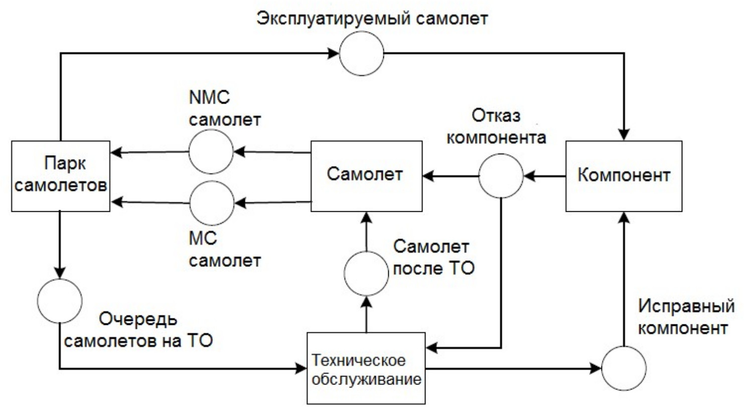 - Sheng J., Prescott D. A colored Petri net framework for modeling aircraft fleet maintenance with cannibalization // Reliability Engineering & System Safety. 2019. Vol. 189. Pp. 67–88.