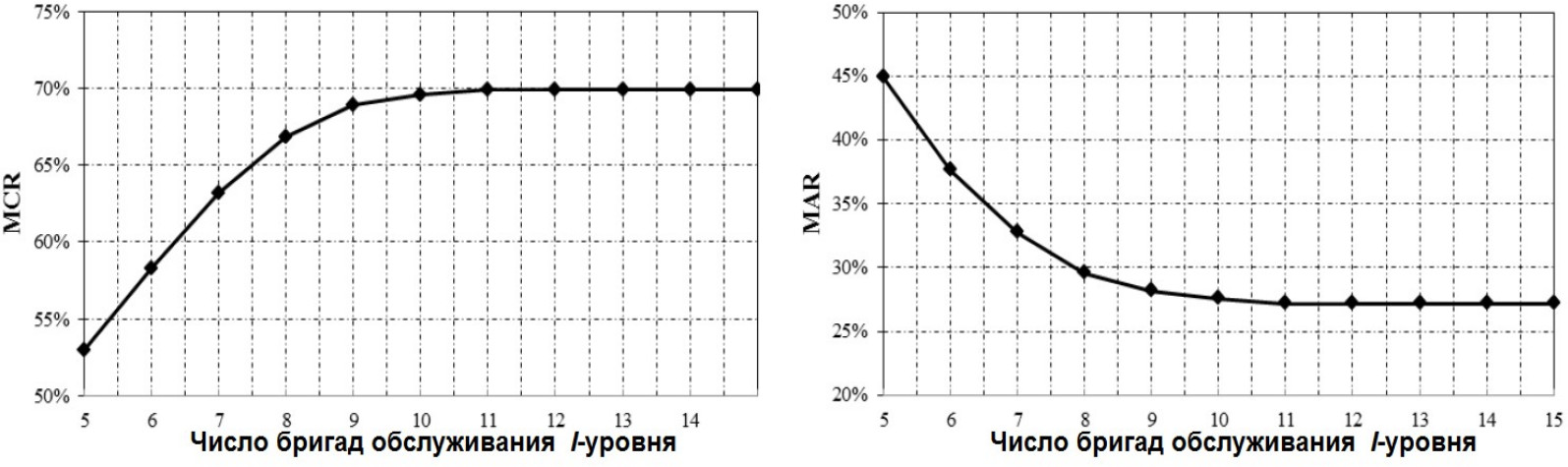 Имитационный эксперимент на такой модели позволяет определить периоды технического обслуживания и время ремонта для различных сочетаний степени повреждений моста и разных параметров вероятностных процессов износа элементов.