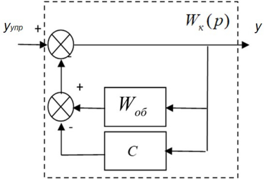 Существует практический подход получения обратной передаточной функции объекта управления для реализации компенсационного элемента, заключающийся во включении его передаточной функции в обратную связь, как показано на рис. 4.