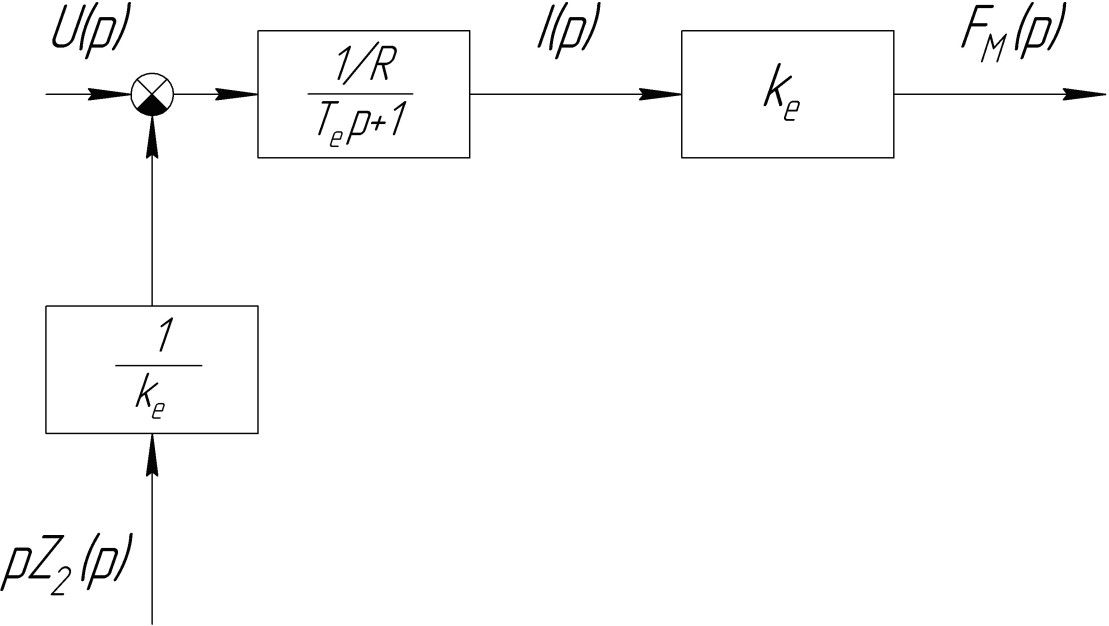 Структурная схема исполнительного элемента , показанного на рис. 4, с учетом соотношений (24) – (26) приобретает вид, представленный на рис. 5, где