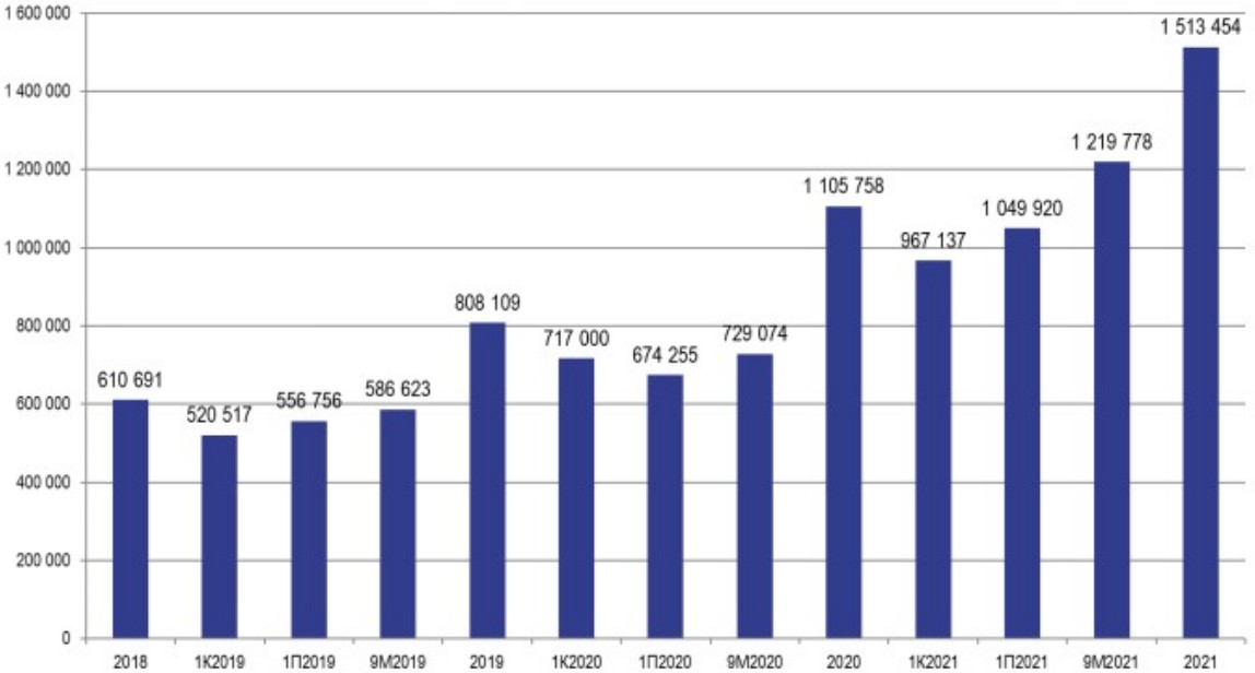 Совокупный портфель российского рынка факторинга вырос за этот период с 0,8 до 1,5 трлн руб., а объем выплаченного финансирования – с 3,1 до 5,8 трлн руб. (рис. 1).