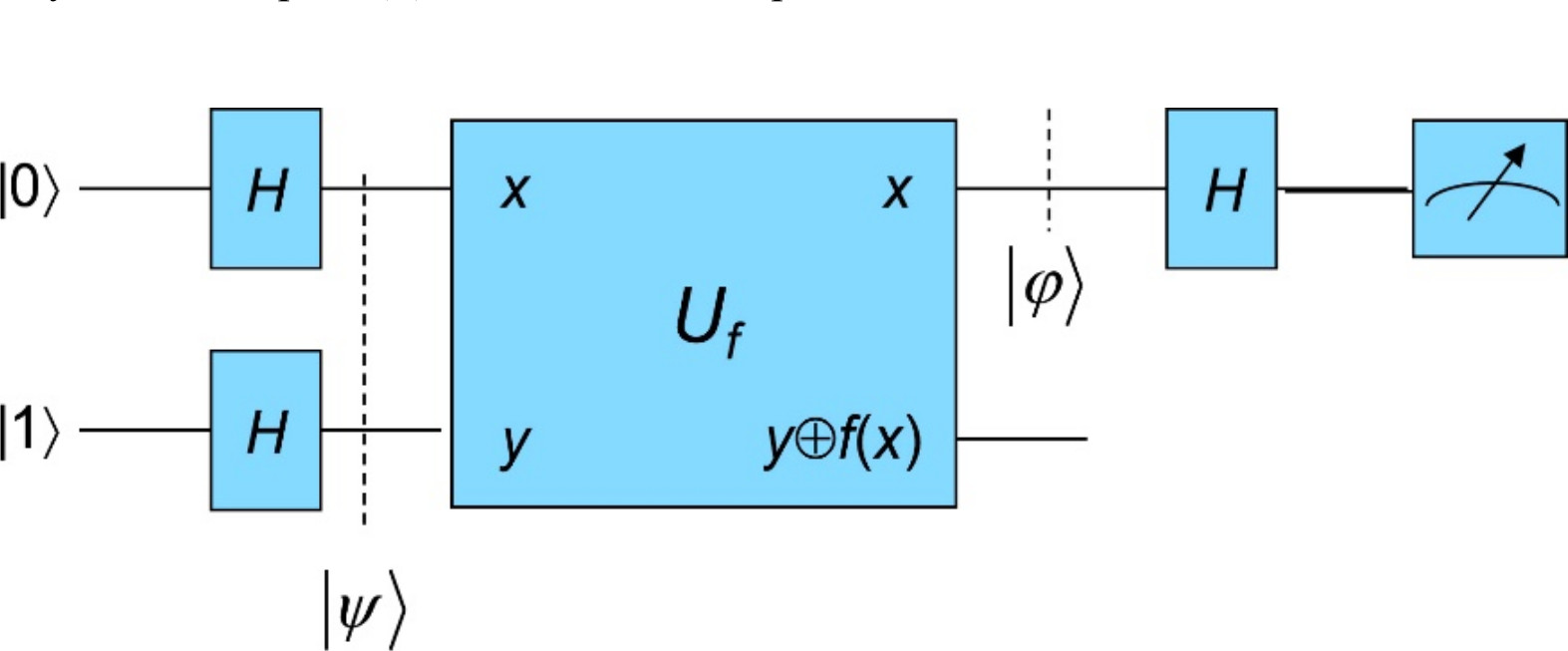 Рис. 4. Квантовая схема, реализующая алгоритм Дойча
