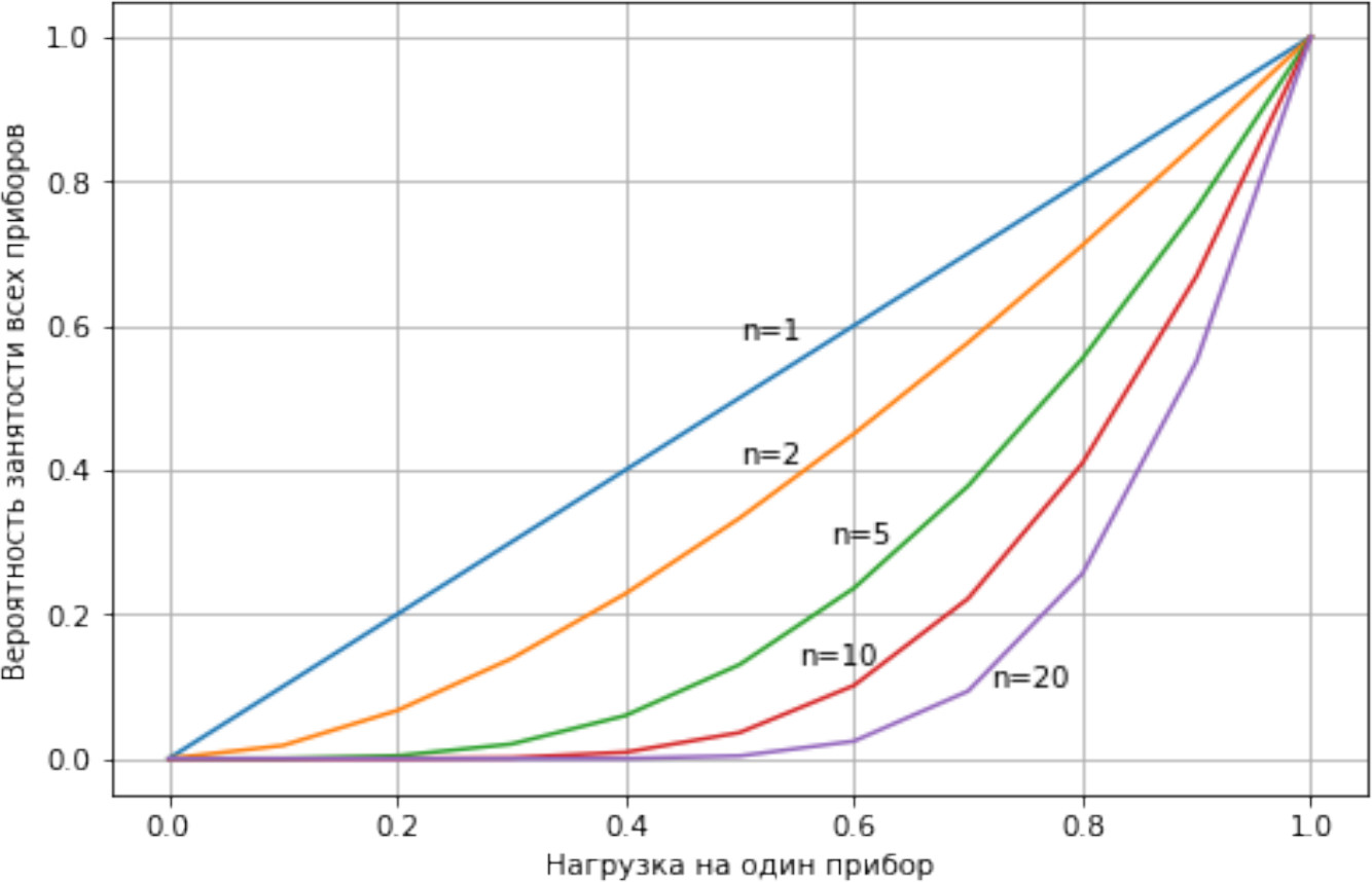 Вероятности занятости всех приборов в многоканальных СМО