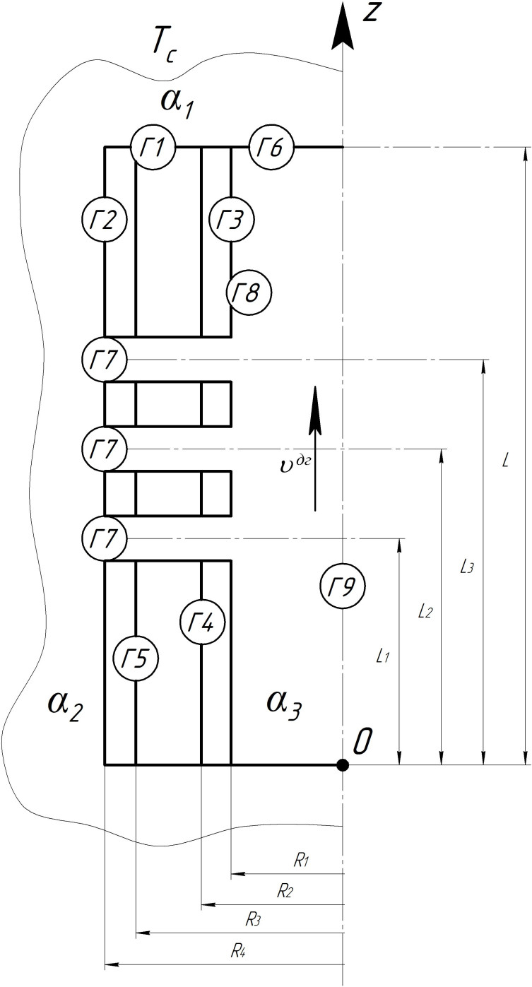 Для решения системы уравнений (1) составлены краевые условия с использованием разработанной схемы (рис. 3).