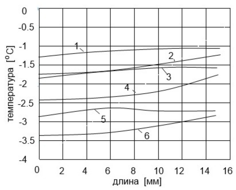 , °С | −1,68 | −1,66 | −1,62 | −1,56 | −1,53 | −1,46 | −1,4 | −1,33 |