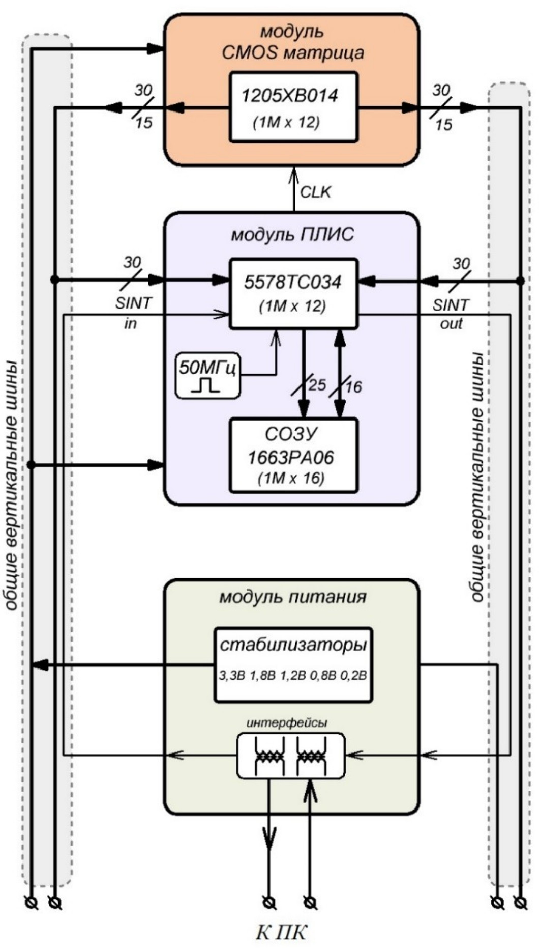 Рис. 4. Структурная схема системы захвата изображения на базе КМОП-матрицы 1205ХВ014