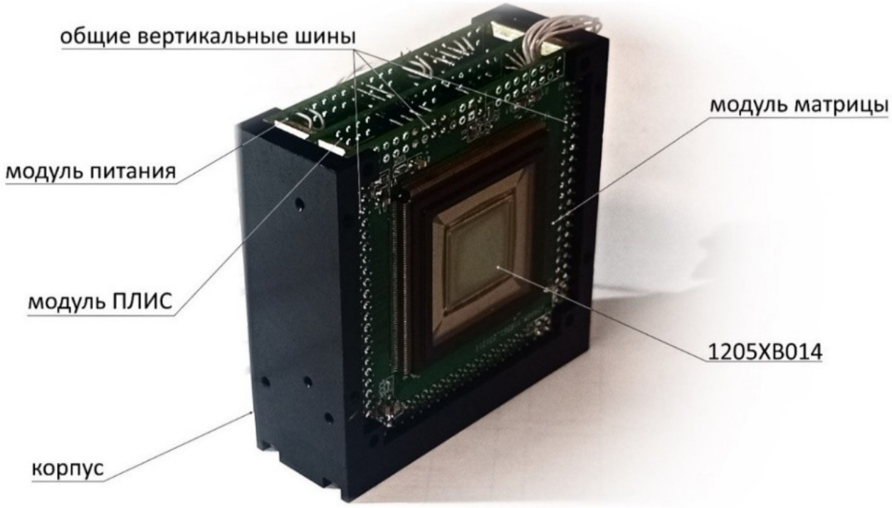 Итогом проделанной работы служит создание универсальной электронной системы захвата изображения с варьируемыми параметрами, задаваемыми как для матрицы, так и для самой ПЛИС. Электроника выполнена полностью на отечественной элементной базе с использованием радиационно стойких компонентов, что повышает надежность устройства и делает возможным его использование в среде с жесткими внешними воздействующими факторами.